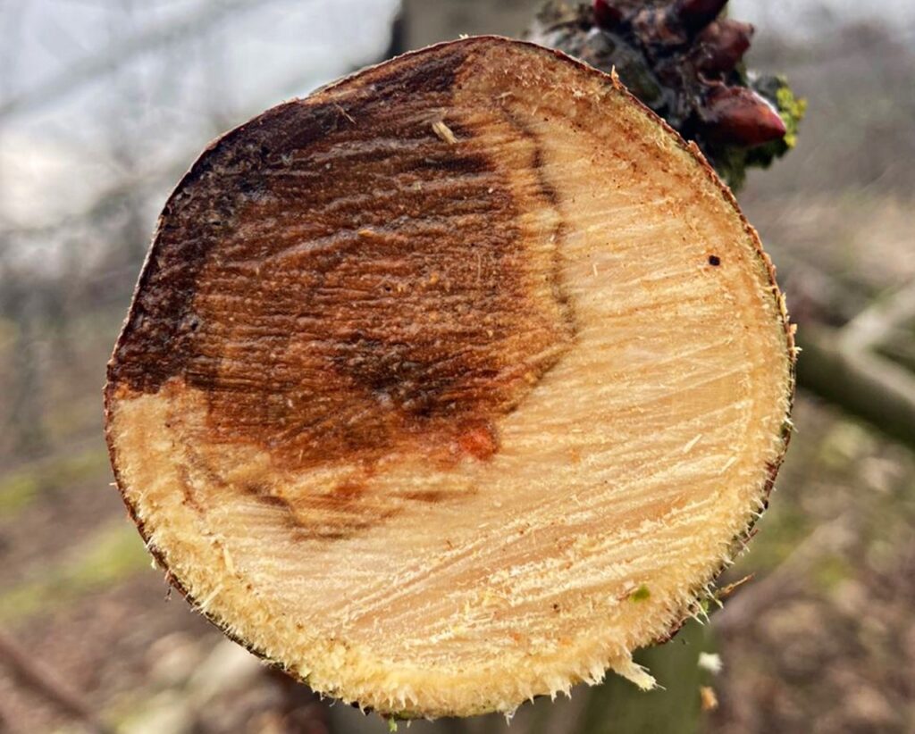 En cuanto al daño sufrido por los árboles frutales producto de las enfermedades, Grinbergs explicó que no todos los patógenos afectan con la misma intensidad y agresividad a las distintas especies, lo que hace que en algunos casos las plantas se vean afectadas de forma inmediata, mientras que en otras ocasiones el daño se puede tardar años en reflejar los síntomas. De esta forma, especies como el arándano pueden ver su producción afectada con una disminución cercana al 40 %, mientras que en manzano esta puede superar el 60 %.