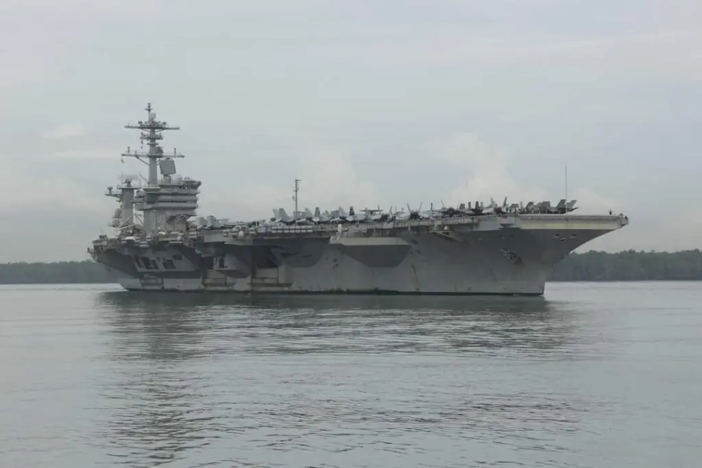 El USS Abraham Lincoln (CVN-72), portaaviones destinado en la Séptima Flota del Pacífico, había arribado al área de operaciones del Comando Central de EE. UU. a finales del mes de agosto por un tiempo indefinido por orden del Secretario de Defensa, Lloyd Austin, para unirse al USS Theodore Roosevelt (CVN-71). Este traslado, motivado por la intensificación del conflicto a nivel regional entre Israel y los grupos terroristas de la región, también buscó proteger los objetivos terrestres y marítimos de ataques con drones, misiles cruceros y balísticos. Previo a su llegada al Mar del Sur de China, el USS Abraham Lincoln (CVN-72) se detuvo en Malasia, siendo la primera visita de este portaaviones al país desde el arresto en 2013. Luego, el 27 de noviembre, el portaaviones se unió en el estrecho de Singapur a sus escoltas: los destructores USS Spruance (DDG-111) y USS Michael Murphy (DDG-112), que habían estado en Phuket, Tailandia, y el USS Frank E. Petersen Jr. (DDG-121), que estaba en Singapur.