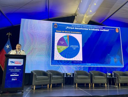 Las naves mayores registradas bajo el pabellón de Chile cuentan con clasificación desfavorable en el indicador de intensidad de carbono (CII) de la Organización Marítima Internacional (OMI), lo que daría cuenta de la necesidad de adoptar medidas de corrección si se quiere cumplir con la meta de reducir en 40% la emisión de gases de efecto invernadero (GEI) de navíos para 2030. Lo anterior fue indicado por Jorge de la Fuente Manríquez, capitán de Corbeta Litoral y representante de la Dirección de Seguridad y Operaciones Marítimas (Dirsomar) y la Dirección General del Territorio Marítimo y de Marina Mercante (Directemar), en el marco de su charla magistral titulada “Descarbonización Marítima con Mirada al GreenVogaye 2025” que efectuó en Trans-Port 2024.
