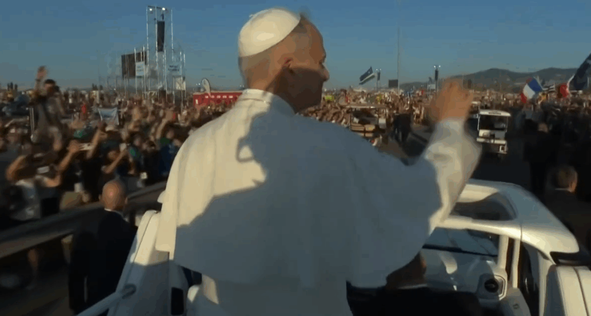 La jornada, que la cadena italiana Rai bautizó como el «Woodstock» católico, incluyó actuaciones de casi una veintena de grupos musicales y de danza que entretuvieron a la multitud bajo el sol abrasador. Con la llegada del Papa, el ambiente festivo se tornó más solemne. Al subir al escenario con una gran cruz de madera, el pontífice se dirigió a los jóvenes: «Queridos jóvenes, tras caminar y compartir estos días de gracia del Jubileo que les están dedicados, nos reunimos ahora en la luz de esta noche para pasar la velada juntos».