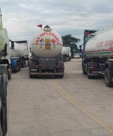 Más de 200 camiones cisternas cargados con combustible permanecen varados en la frontera Yacuiba (Tarija) que une con Argentina, a...