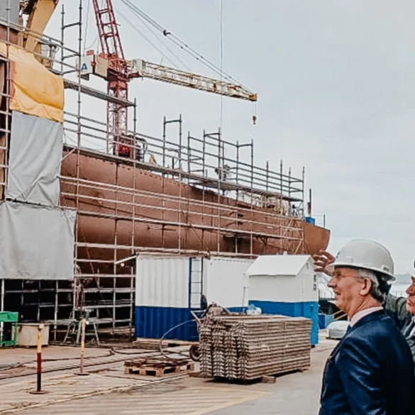 El embajador Frances en la grada de Asmar Talcahuano contempla el avance de la construcción del primer buque multipropósito del...