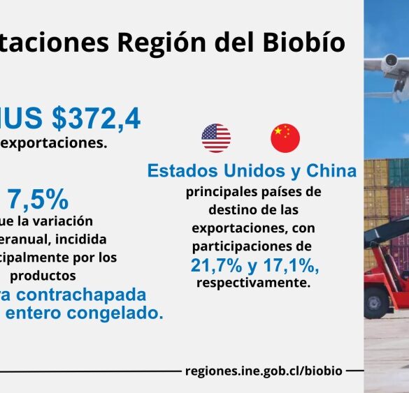 Las exportaciones de la Región del Biobío alcanzaron los 372,4 millones de dólares en mayo de 2025, lo que representa...