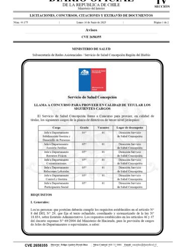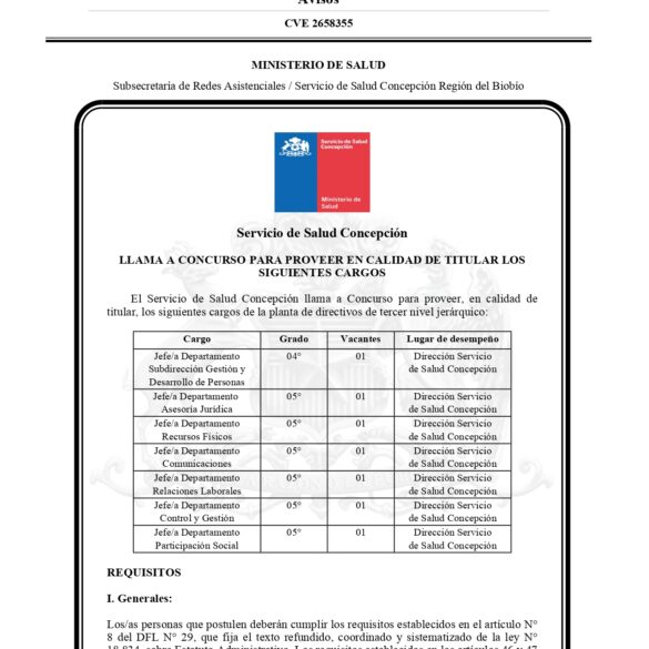 El Servicio de Salud Concepción, dependiente de la Subsecretaría de Redes Asistenciales del Ministerio de Salud, ha anunciado la apertura...