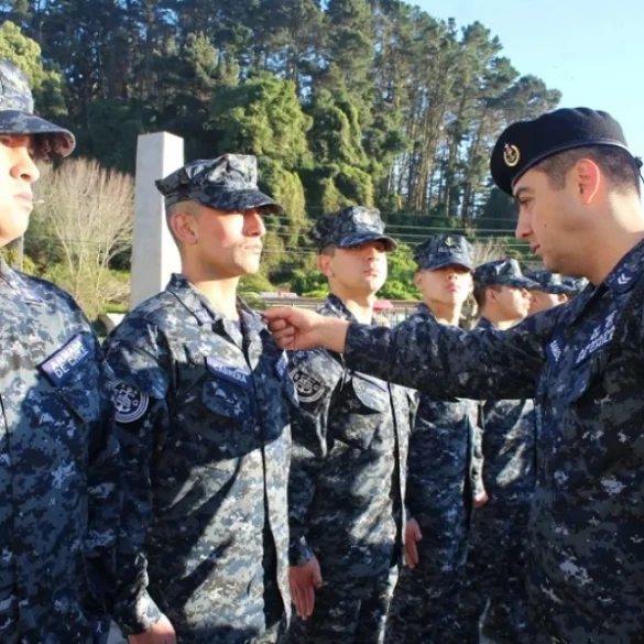 La Armada de Chile está implementando un nuevo uniforme, conocido como la Tenida N°24, un diseño pixelado en tonos azules...